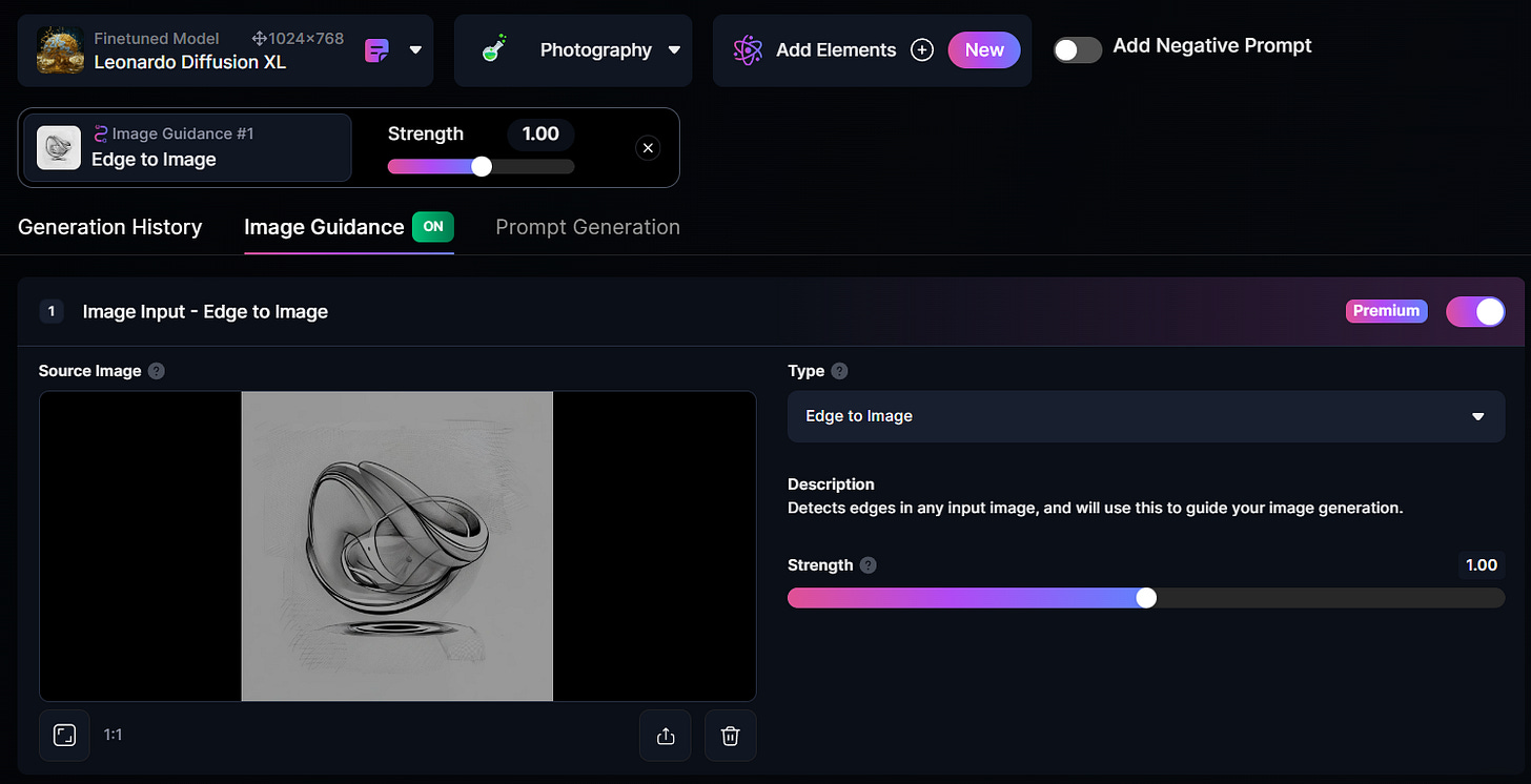 Step 2: Sign In to Leonardo AI and use image guidance with 'Edge to image' and 'Depth to image' extensions. The strength parameter valuse needs to be tuned for your specific use case.