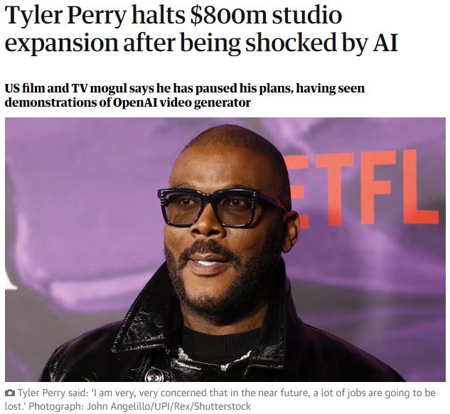 Tyler Perry already cancelled an 800 million dollar studio investment after seeing Sora.